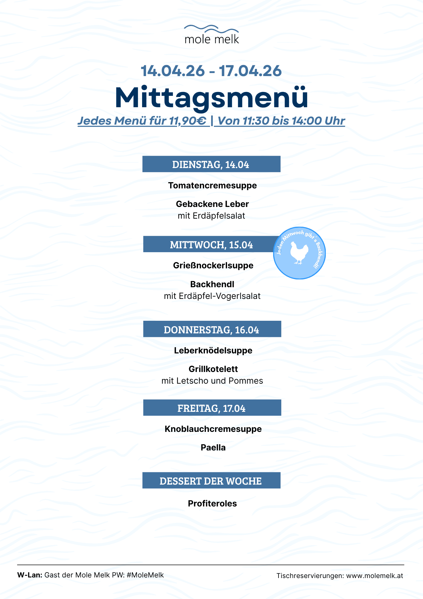 Jede Woche gibts von Dienstag bis Freitag in der Mole Melk das Mittagsmenü.