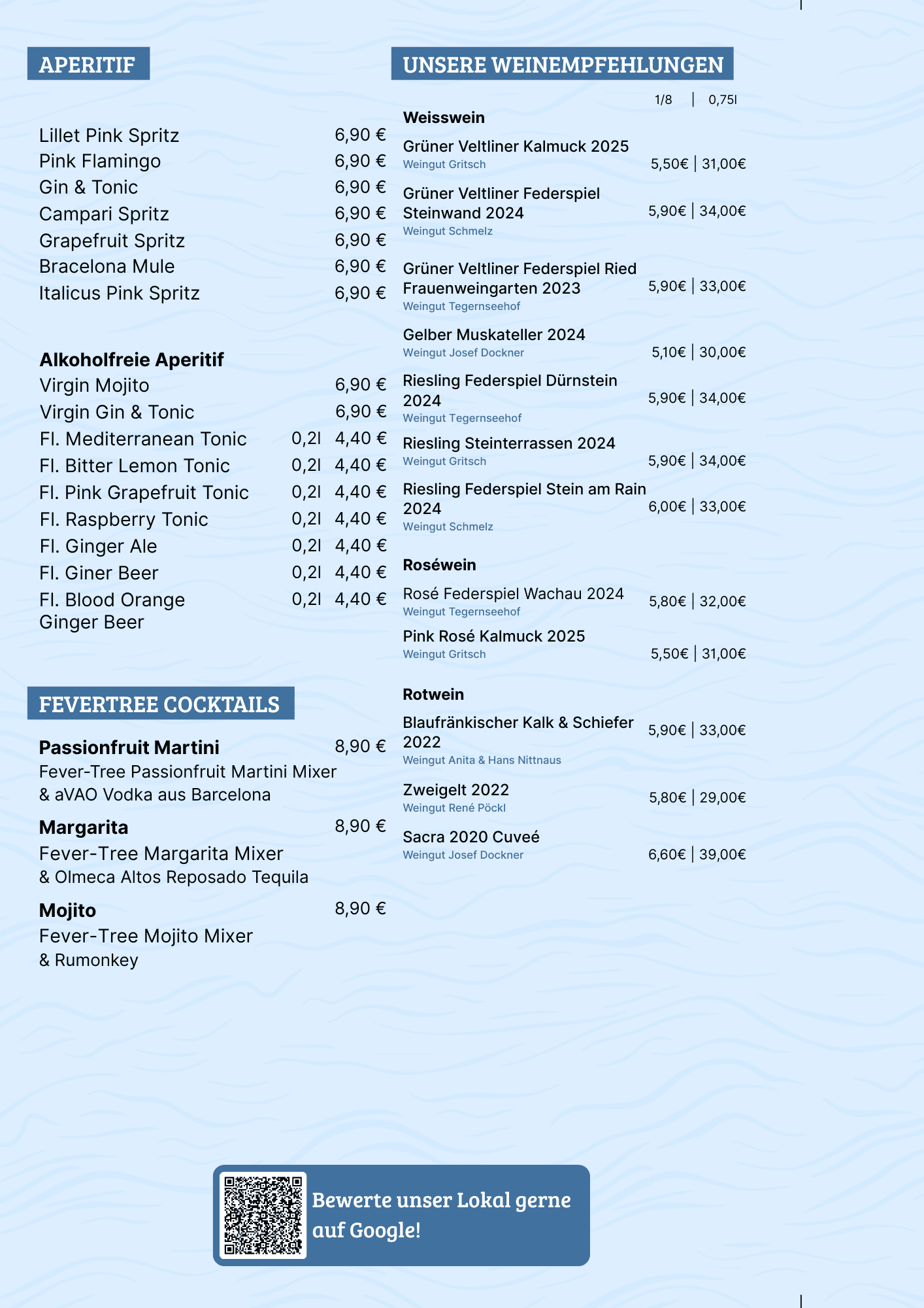 Unsere Getränkekarte ist Ausdruck eines klaren Qualitätsversprechens. Jeder Wein, jeder Cocktail und jedes Bier wird mit Sorgfalt ausgewählt. Wir arbeiten mit Produzenten, die ihre Arbeit verstehen und ihren Produkten Tiefe, Herkunft und Persönlichkeit verleihen.